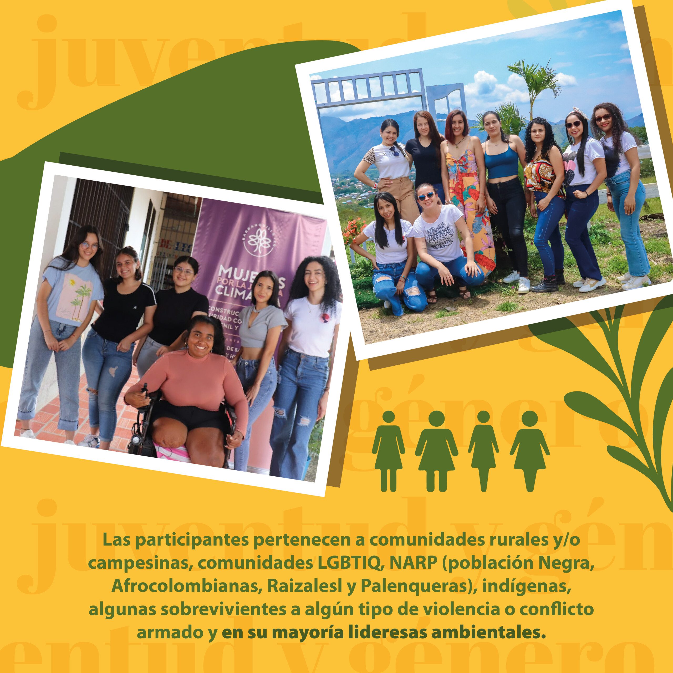Este proyecto busca incrementar el acceso al fortalecimiento de capacidades frente al cambio y la justicia climática en mujeres jóvenes de instituciones educativas en contextos de vulnerabilidad socioeconómica del municipio de Barranquilla, del departamento del Atlántico. Fortaleciendo al mismo tiempo sus capacidades de liderazgo, habilidades de comunicación, y la reflexión para crecimiento personal. Este proyecto se realiza gracias a una campana en línea de recolección de fondos, que contó con apoyo de donantes particulares.